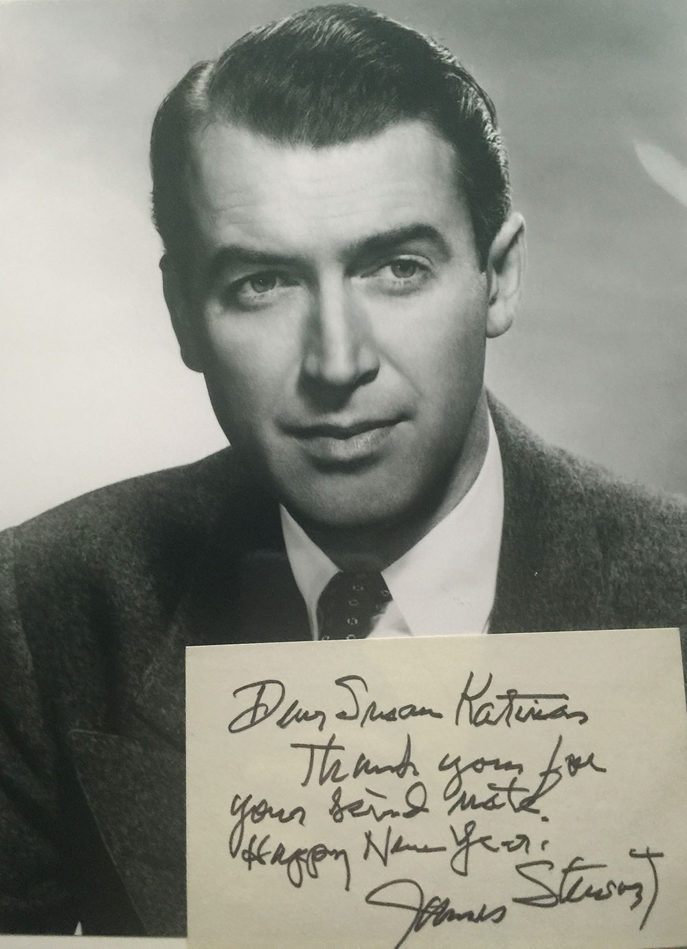 The perfect person for Frank Capra’s classic “It’s a Wonderful Life”, Jimmy Stewart was in a number of personal favorites throughout his lengthy career. I acquired this signed card (written to someone else) from an estate sale in the early 2000s.