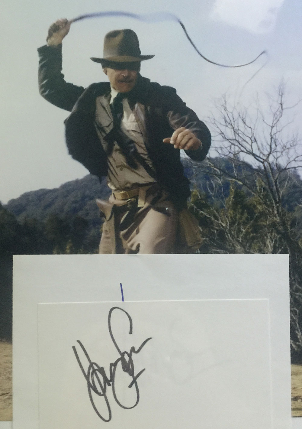 One man. Two of my favorite characters: Han Solo, Indiana Jones. I’ve tried to find a legit signed 8×10 of the man as either character but they are either way too expensive or don’t look legit. I sought out two signed index cards through different dealers in the early 2000s.