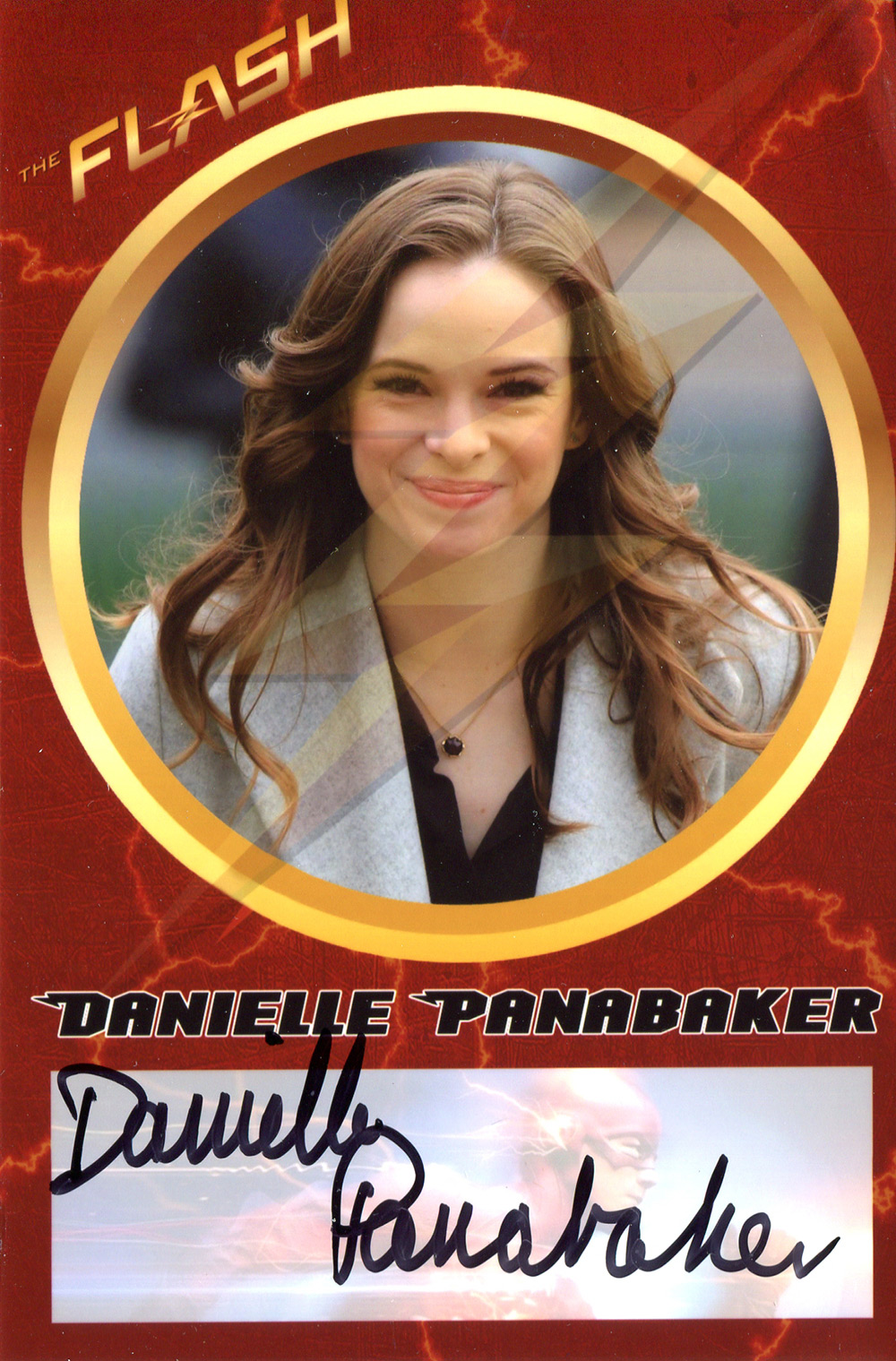 Absolutely adorable and talented actress Danielle Panabaker of the CW hit “The Flash” signed these three 4×6 custom cards I made through the mail.